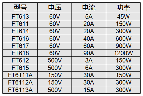系統電子負載陣列型號列表: