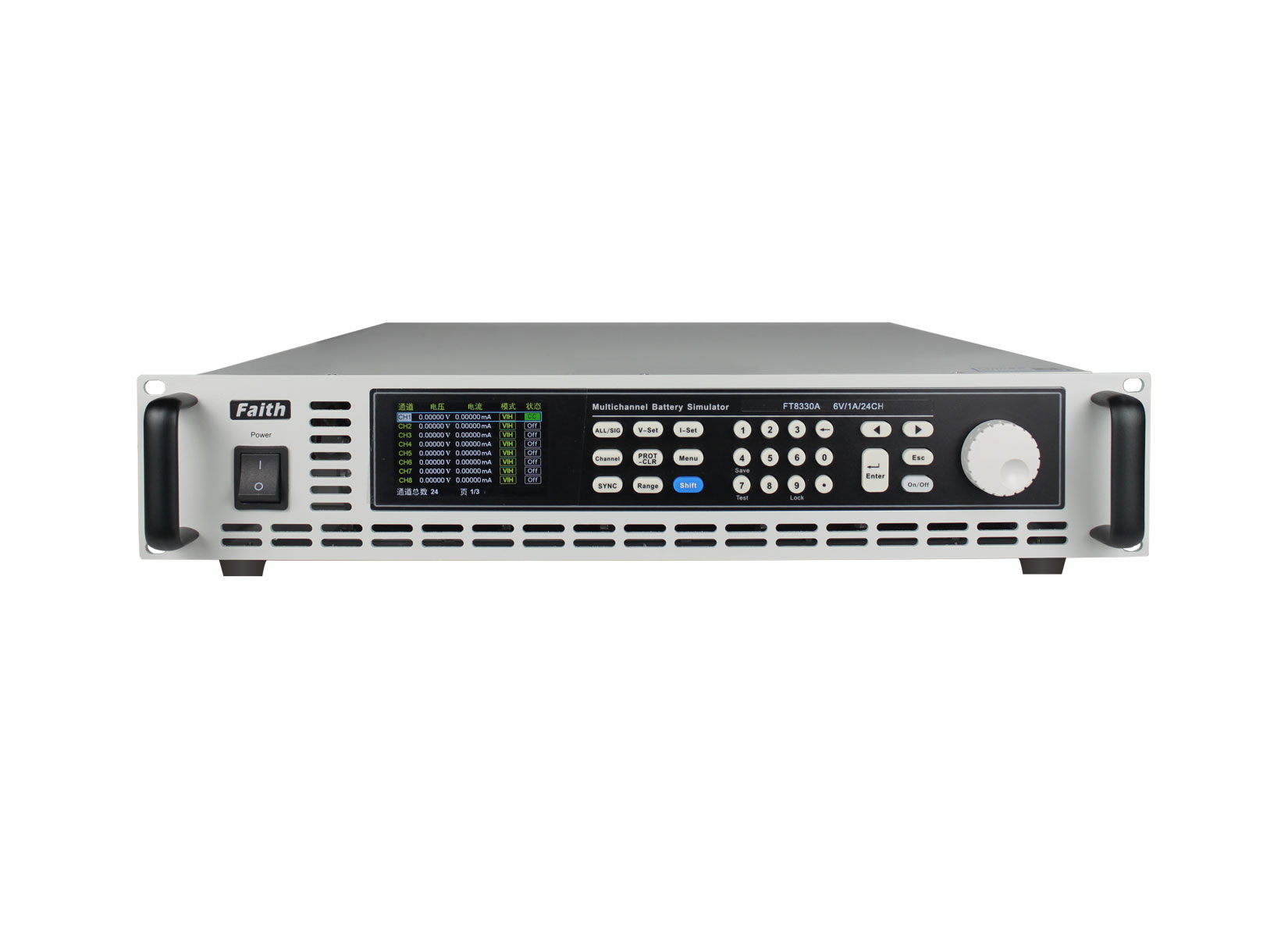 FT8330系列電池模擬器是一款高精度、多通道、單象限可編程電池模擬電源。單機通道數達36個且各通道間電氣隔離,方便用戶串、并電源。超高輸出精度以及超低紋波、干擾等特點使得該系列電源在電池電芯、超級電容、BMS等測試系統中得到廣泛應用。FT8330系列采用標準19英寸機箱,并提供了以太網口和RS485通訊接口,方便集成到研發和產線自動化測試平臺,也可單獨使用。