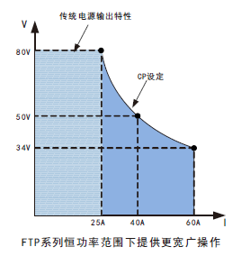 FTP系列擁有超過2.4倍寬范圍輸出量程。可在設定范圍內,自動調整輸出電壓、電流,實現恒功率輸出。CP功能對太陽能光伏模擬測試,負載穩定性測試及保護安全性測試提供幫助。