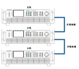 FTP9000系列電源提供了主從并機方式,支持10臺同型號的電源進行并機操作,以便用戶實現更大功率擴展。并機操作時,從機自動復制主機的設定參數,實現自動均流。